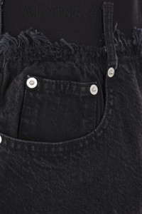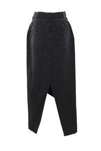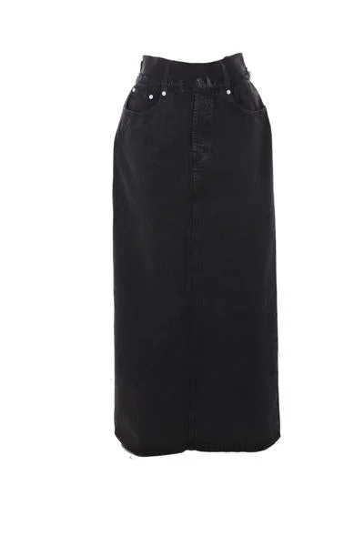 Alainpaul's skirt crafted in grey denim with fringed trim at waist. Featuring elasticated waistband with logo, front button closure, belt loops, five classic pockets and back slit. Unlined interior. Gender: Women Material: 100% COTTON/ COTON Color: BLACK Made in: PT Product ID: S1UDESK01DENIMBLACK *Import tax/duty will be calculated at checkout (If applicable)