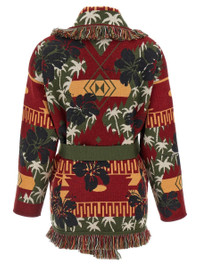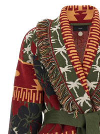 Hibiscus Bloom' virgin wool cardigan with all-over jacquard pattern, fringed detail at the edges and back, belt at the waist, pockets, long sleeves Gender: Women Material: 100% VIRGIN WOOL Color: MULTICOLOR Made in: Italy Product ID: LWHB064E25KNI00956255625 *Import tax/duty will be calculated at checkout (If applicable)
