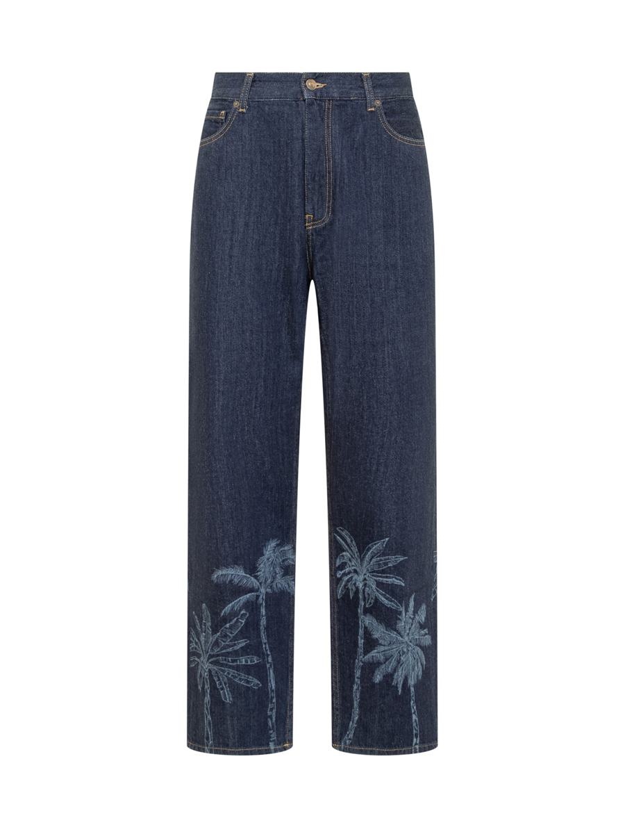 Long denim jeans. Straight fit. Zipper and button closure. Belt loops. Five pockets. Embroidered Jungle Toile motif on bottom. Gender: Men Material: 100% COTTON Color: BLUE Made in: IT Product ID: LMYA011R24DEN002 4000 *Import tax/duty will be calculated at checkout (If applicable)