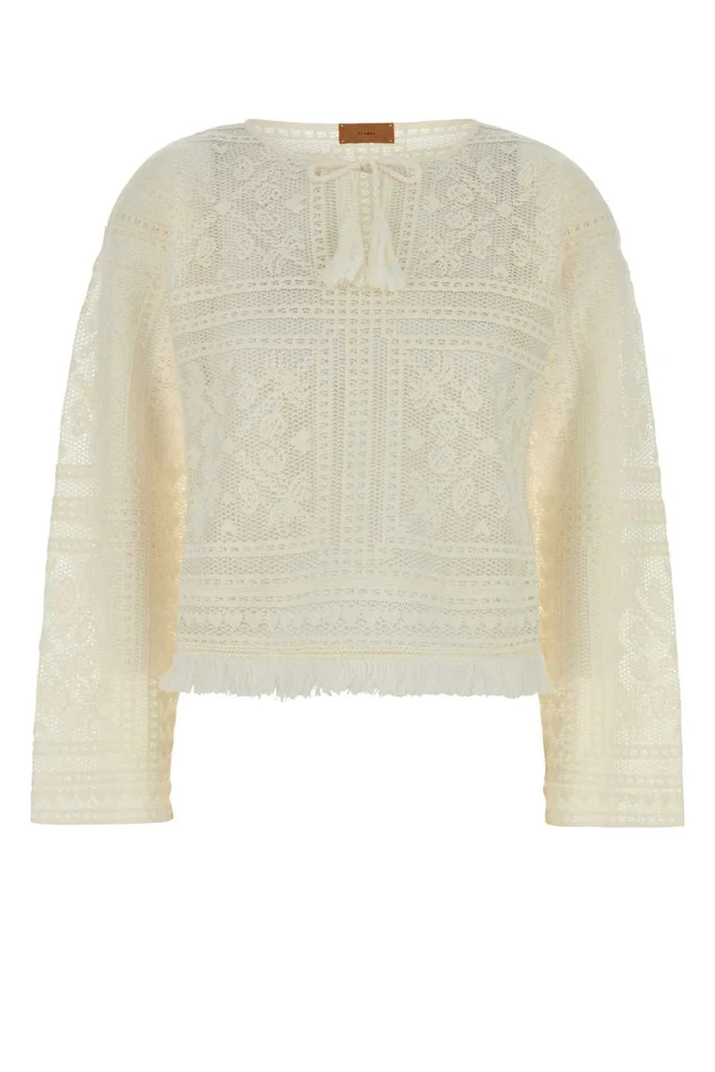White Crochet Kiss By The Book Sweater Gender: Women Material: EXTERIOR: 76% COTTON 14% CASHMERE 10% NYLON Color: WHITE Made in: Italy Product ID: LWHV005E24KNI001 0303 *Import tax/duty will be calculated at checkout (If applicable)