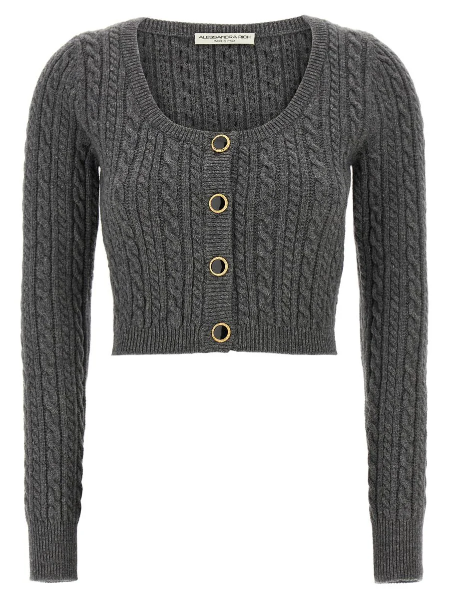 Cropped cardigan in braided wool, front button closure, long cuffed sleeves Gender: Women Material: 100% WOOL Color: GRAY Made in: IT Product ID: FABX3867K43920003 *Import tax/duty will be calculated at checkout (If applicable)