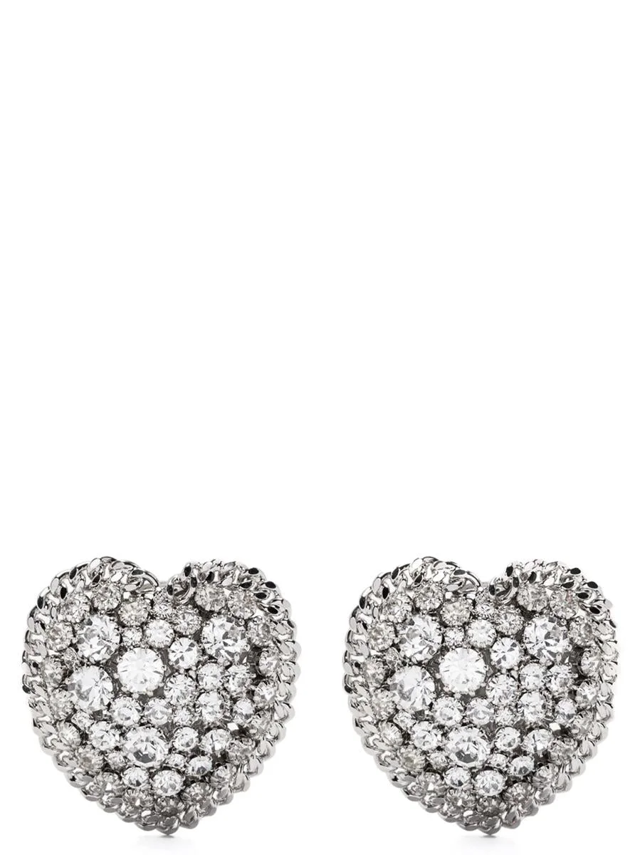 Heart-shaped metal earrings with crystal application and chain piping, clip closure. ITEM CANNOT BE RETURNED Gender: Women Material: 70% GLASS, 30% BRASS Color: SILVER Made in: Italy Product ID: FABA3290J00240001 *Import tax/duty will be calculated at checkout (If applicable)