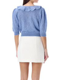 Knitted mohair hotfix jumper by Alessandra Rich. Featuring: Wide collar Three buttons placket Elbow length sleeves Cropped Ribbed hem and cuffs Model is 1,72 m and wears size 40 Gender: Women Material: 50% KID MOHAIR 32% POLYAMIDE 18% WOOL Color: BLUE Made in: IT Product ID: 24PFABX3651M#9117 *Import tax/duty will be calculated at checkout (If applicable)