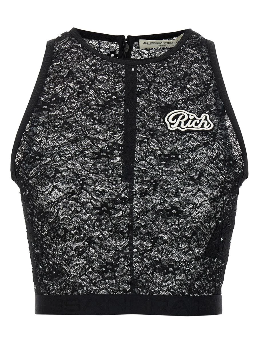 STRETCH LACE SLEEVELESS TOP WITH HOTFIX AND PATCH