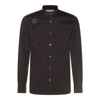 Black cotton shirt from McQueen featuring long sleeves, shirt collar, silver tone detail, buttons fastening and regular vestibility. Size Type: Shirts in inches Gender: Men Material: 100 % COTTON Color: Black Made in: RO Product ID: 828259QNAAX1000 *Import tax/duty will be calculated at checkout (If applicable)