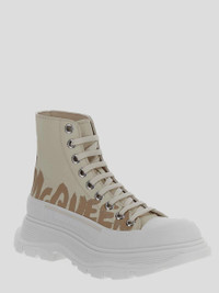 Alexander McQueen boot in cream polyestetr and white rubber with beige logo Gender: Women Material: 100% POLYESTER Made in: IT Product ID: 708752W4RQ22257 *Import tax/duty will be calculated at checkout (If applicable)