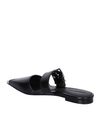 Black Punk sandals by Alexander Mcqueen; they feature a bold and alternative design in line with the brand's identity Pointed toe. Metal toecap. Top buckle fastening. Adjustable fastening. Slip on style. Branded leather insole. Flat sole. Low block heel. Silver tone hardware. Color: black Made in Italy Material: 100% Calf Leather Gender: Women Material: 100% CALF LEATHER Color: Black Made in: IT Product ID: 733188 WHSWD 1081 *Import tax/duty will be calculated at checkout (If applicable)