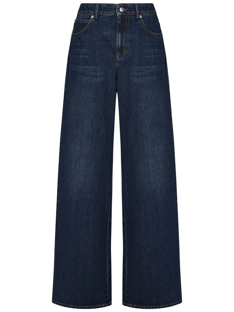 Alexander McQueen Dark Blue Cotton Jeans. Stonewashed dark blue cotton denim, silver-toned rivets, button and fly-zip closure, 5-pockets design, branded leather label at the back waist, wide leg. Gender: Women Material: 100%COTTON Color: BLUE Made in: IT Product ID: 794136.QMACS_4297 *Import tax/duty will be calculated at checkout (If applicable)