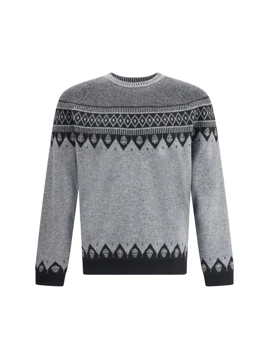 ALEXANDER MCQUEEN'S WOOL SWEATER COMBINES FINE WORKMANSHIP AND ICONIC CHARACTER. CRAFTED FROM WOOL, IT FEATURES A RIBBED CREW NECK, CUFFS AND HEM FOR A DEFINED AND COMFORTABLE FIT. THE JACQUARD PATTERN WITH SKULLS, THE DISTINCTIVE SYMBOL OF THE MAISON, GIVES THE GARMENT A BOLD AND RECOGNIZABLE AESTHETIC, PERFECT FOR A CONTEMPORARY STYLE WITH A STRONG IMPACT. STANDARD Gender: Men Material: WOOL Color: GREY Made in: Italy Product ID: 839663Q1BD5_1363 *Import tax/duty will be calculated at checkout (If applicable)