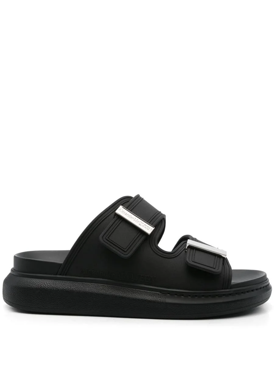 black slip-on style flat rubber sole branded footbed round open toe Gender: Women Color: Black Made in: Imported Product ID: 658063W4Z511081 *Import tax/duty will be calculated at checkout (If applicable)