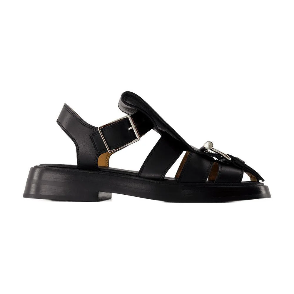 Mcqueen Black Sandals, Buckle Closure, Round Toe, Leather Upper, Eu size (IT) Gender: Women Material: 100% CALF LEATHER/RUBBER+LEATHER SOLE Color: Black Made in: IT Product ID: 814293WHACC1064 *Import tax/duty will be calculated at checkout (If applicable)