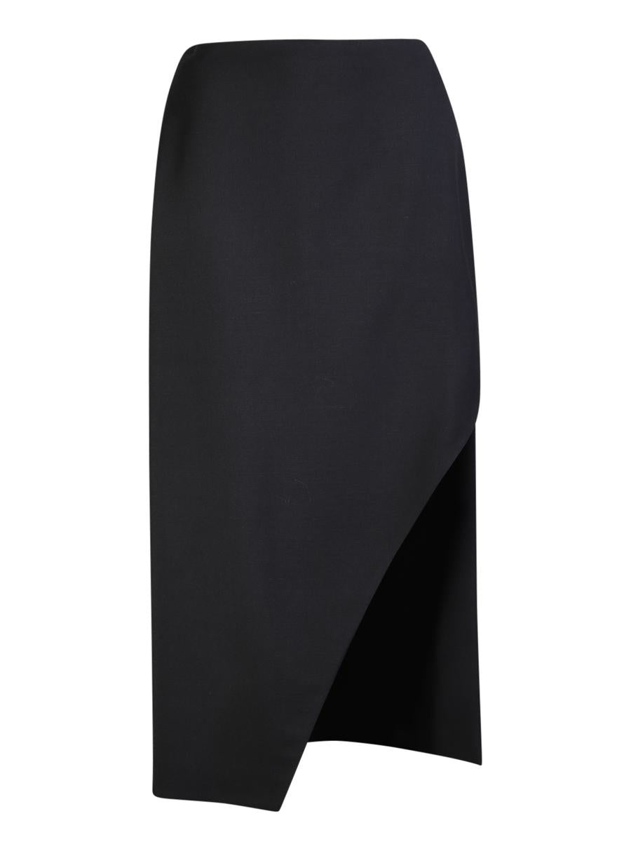 Asymmetric cut. Wool fabric. Front slit. A testament to understated elegance, this pure black wool midi skirt from Alexander McQueen features a sweeping asymmetric cut and a pronounced front slit that adds a touch of sensuality. Gender: Women Material: 100% WOOL Color: BLACK Made in: Imported Product ID: 718773 QJAC7 1000 *Import tax/duty will be calculated at checkout (If applicable)