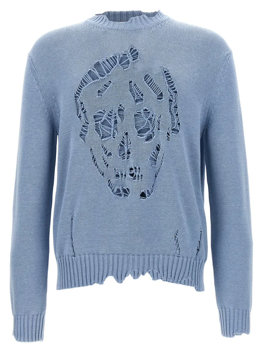 Used-effect cotton sweater with front Skull cut-out detail, crew neck, long cuffed sleeves Gender: Men Material: 100% COTTON Color: BLUE Made in: Italy Product ID: 807272Q1BA64331 *Import tax/duty will be calculated at checkout (If applicable)