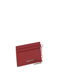 Alexander McQueen's "Sling" card case is the perfect accessory for the modern woman who wants to combine elegance and functionality. Made of red calfskin, it stands out for its sophisticated design and metal McQueen logo that lends a touch of luxury. This compact and versatile accessory is a must-have for those seeking a unique style to match any occasion. || - Dimensions: 10x7x0.1 cm - One central compartment - Four card slots - Metal McQueen lettering - Chain with shiny silver finish and engraved metal cross-bar - Attachable to bags in the Sling and Cross-bar lines || Complete your look by pairing the "Sling" card case with one of the elegant bags from the Alexander McQueen line, such as the "Sling" or "Cross-bar" bag. For an even more refined outfit, wear a pair of stiletto heeled shoes, completing your style with the unmistakable touch of class from the McQueen brand. Materials: Leather Gender: WOMEN Material: 100% CALF LEATHER Color: RED Made in: IT Product ID: 8044341T1AN6820 *Import tax/duty will be calculated at checkout (If applicable)
