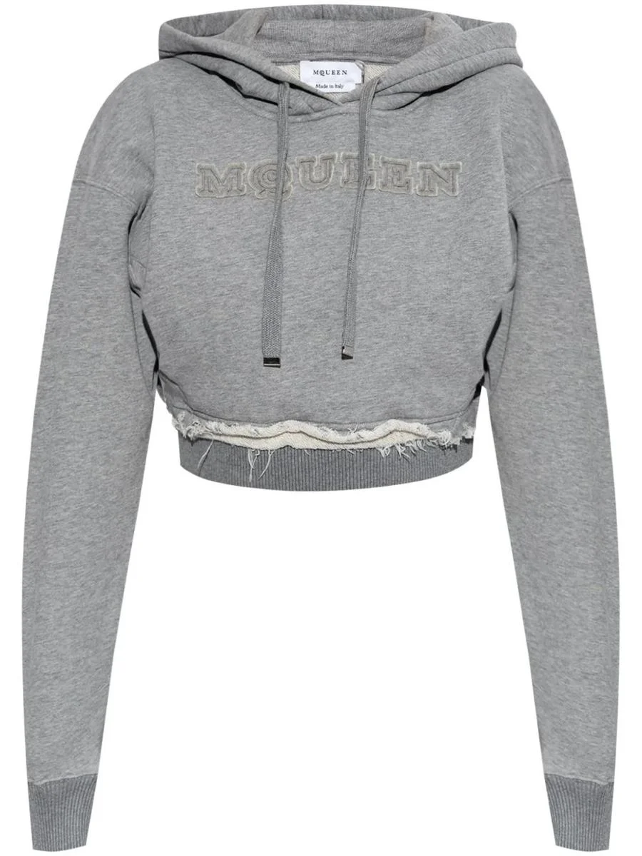 light grey drawstring hood ribbed trim distressed finish embroidered logo at the chest Gender: Women Material: 100%COTTON Color: GREY Made in: IT Product ID: 815497QLAD81015 *Import tax/duty will be calculated at checkout (If applicable)