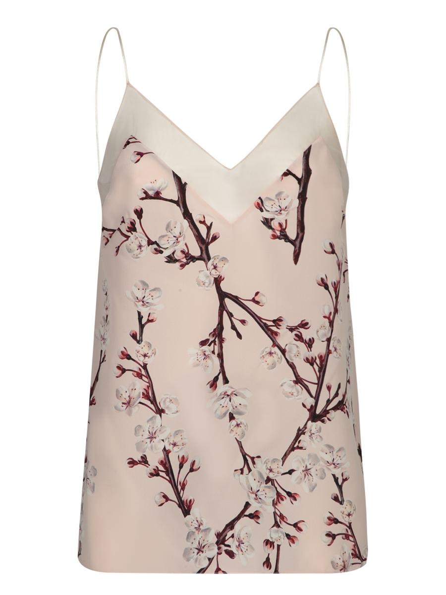 Light silk top with floral print. Deep V-neckline. Adjustable thin straps.. A delicate blend of elegance and femininity, this Alexander McQueen top features a romantic floral pattern on a pink background. Perfect for summer evenings or formal events Gender: Women Material: 100% SILK Color: PINK Made in: Imported Product ID: 791153 QCALA 5072 *Import tax/duty will be calculated at checkout (If applicable)