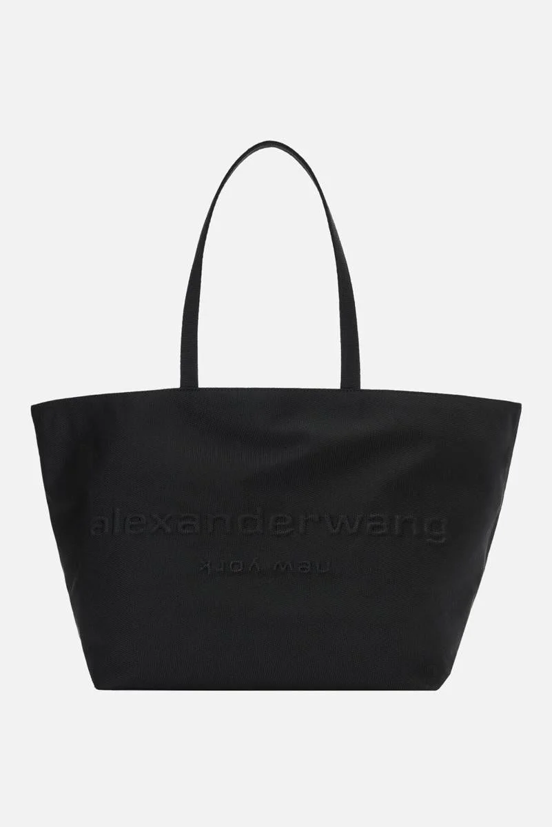 Alexander Wang's "Punch" Tote is a black nylon shoulder bag with a stylish and distinctive look. - Dimensions: 55.5x30x25 cm - Embossed "alexanderwang" logo in the center of the front - Inside laptop pocket - Two shoulder carry handles - Extra drawstring closure - Single main compartment - Black twill lining To complete the look with the "Punch" Tote, we recommend pairing it with an outfit that is both elegant and casual at the same time. Thanks to its versatile design, this bag is perfect for a variety of occasions, from office to leisure. Wear it with a pair of jeans and a white shirt for a chic everyday look, or with a black dress and high heels for a more formal occasion. Bag Dimensions: 55,5x30x25 cm Materials: Nylon Extra Description: Large Gender: Women Material: 100% NYLON Color: Black Made in: VN Product ID: 20224T02T001 *Import tax/duty will be calculated at checkout (If applicable)