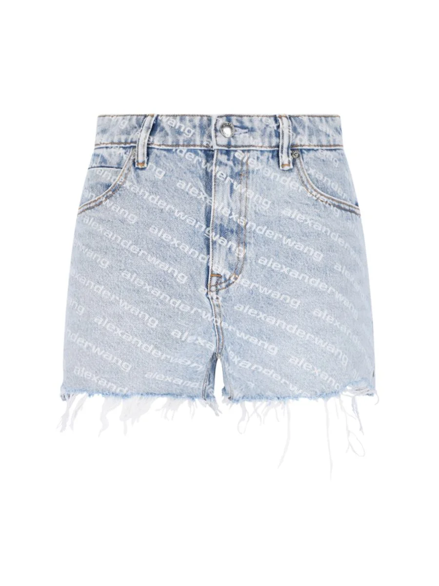 'Bite' cotton denim shorts with all-over logo print, zip and button closure, five pockets, frayed hem and a high waist style Gender: Women Material: 100% COTTON Color: BLUE Made in: IMPORTED Product ID: 4DC2204781270 *Import tax/duty will be calculated at checkout (If applicable)