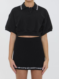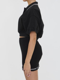Polo shirt made of compact black cotton jersey. It features a knitted collar with a contrasting logo, front button placket, short voluminous sleeves with ribbed edges, and a ribbed elasticated hem. Cropped cut and a regular fit. The model is 178 cm tall and is wearing a size S. Size nationality: INT Gender: Women Material: 100% COTTON Color: Black Made in: Imported Product ID: 7746133 4CC12612070 001 *Import tax/duty will be calculated at checkout (If applicable)