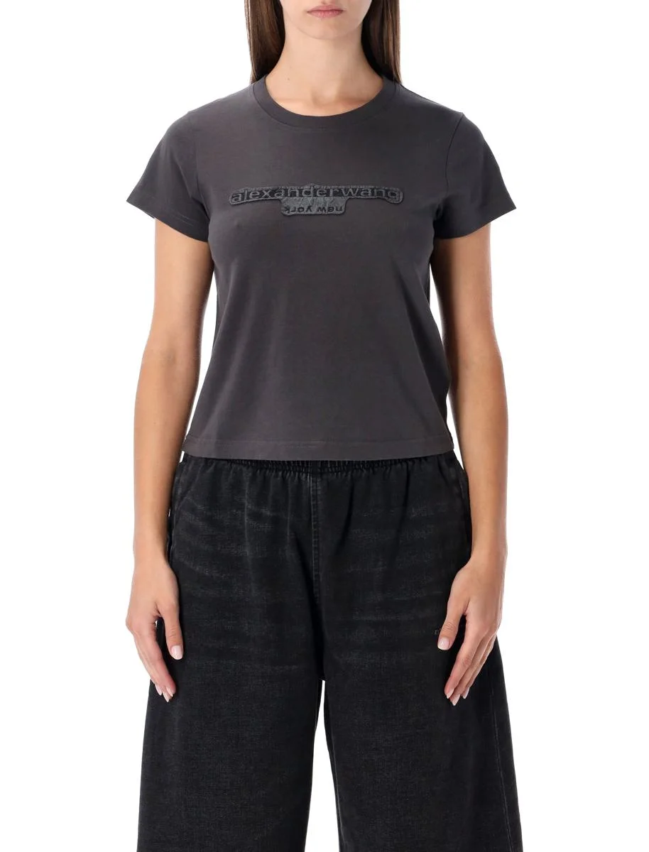 This Alexander Wang grey delave t-shirt blends simplicity with subtle detailing. Designed in soft cotton jersey with a vintage-inspired wash, it features a slim cut, ribbed crew neckline, and tonal embroidered patch logo on the chest. A versatile wardrobe essential for an elevated casual look. Made from grey delave cotton jersey Vintage-effect washed finish Classic ribbed crew neck Short sleeves Tonal embroidered patch logo Slightly slim fit Alessandra is 1,75 m and wears size S Gender: Women Material: 100% COTTON Color: WASHED BLACK BEAN Made in: Portugal Product ID: 25A1CC4251159#229 *Import tax/duty will be calculated at checkout (If applicable)