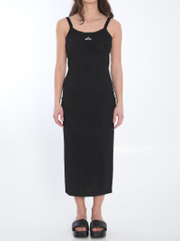 Sleeveless black mesh slip dress with a 3D logo on the chest. It features thin straps, a round neckline, and a ankle-length design. The model is 178cm tall and wears a size S. Size nationality: INT Gender: Women Material: 74% VISCOSE, 21% POLYAMIDE, 5% ELASTANE; DETAILS: VISCOSE, POLYAMIDE, ELASTANE Color: Black Made in: IMPORTED Product ID: 3287271 4KC2256043 001 *Import tax/duty will be calculated at checkout (If applicable)