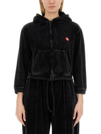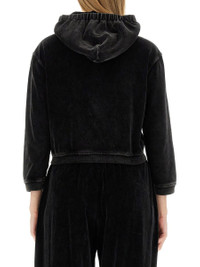COTTON HOODIE FROM ALEXANDER WANG FEATURING CROPPED STYLE, VELVET DESIGN, FRONT ZIPPER FASTENING, TWO FRONT PATCH POCKETS, ICONIC BRAND LOGO PRINTED IN CONTRAST ON FRONT. WOMAN STANDARD Gender: Women Material: COTTON | POLYESTER Color: WASHED PEPPER Made in: IMPORTED Product ID: 4CC1242075_095A *Import tax/duty will be calculated at checkout (If applicable)
