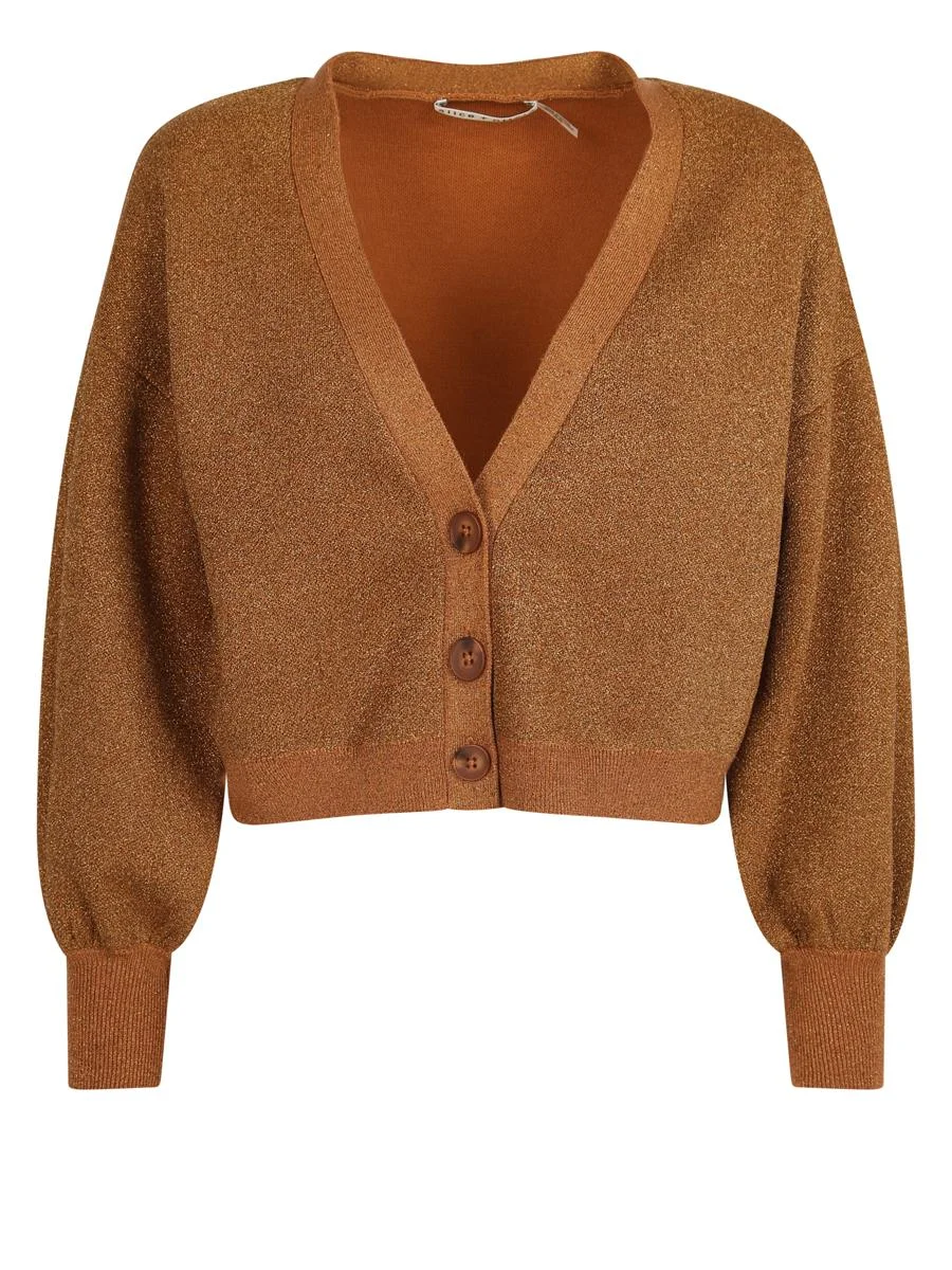 Wool blend cardigan V-neck Long sleeves Cropped length Metallic finish Color: brown Wool blend Gender: Women Color: BROWN Made in: Imported Product ID: CC10753971 A223 *Import tax/duty will be calculated at checkout (If applicable)