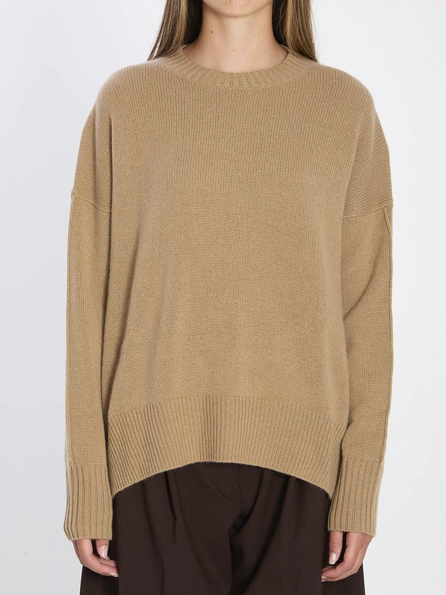 Beige cashmere sweater. Features ribbed crew neck, long sleeves, small side slits, and ribbed finishes. Relaxed fit. The model is 178 cm tall and wears size S. Size nationality: INT Gender: Women Material: 100% CASHMERE Color: Beige Made in: Imported Product ID: 3370518 11151 43 *Import tax/duty will be calculated at checkout (If applicable)