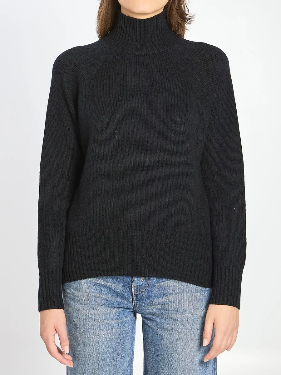 Turtleneck sweater in black wool and cashmere. Features a high neck, long sleeves, small side slits, and ribbed trims. Relaxed fit. The model is 178 cm tall and wears size S. Size nationality: INT Gender: Women Material: 70% WOOL, 30% CASHMERE Color: Black Made in: Imported Product ID: 3249065 17104 90 *Import tax/duty will be calculated at checkout (If applicable)