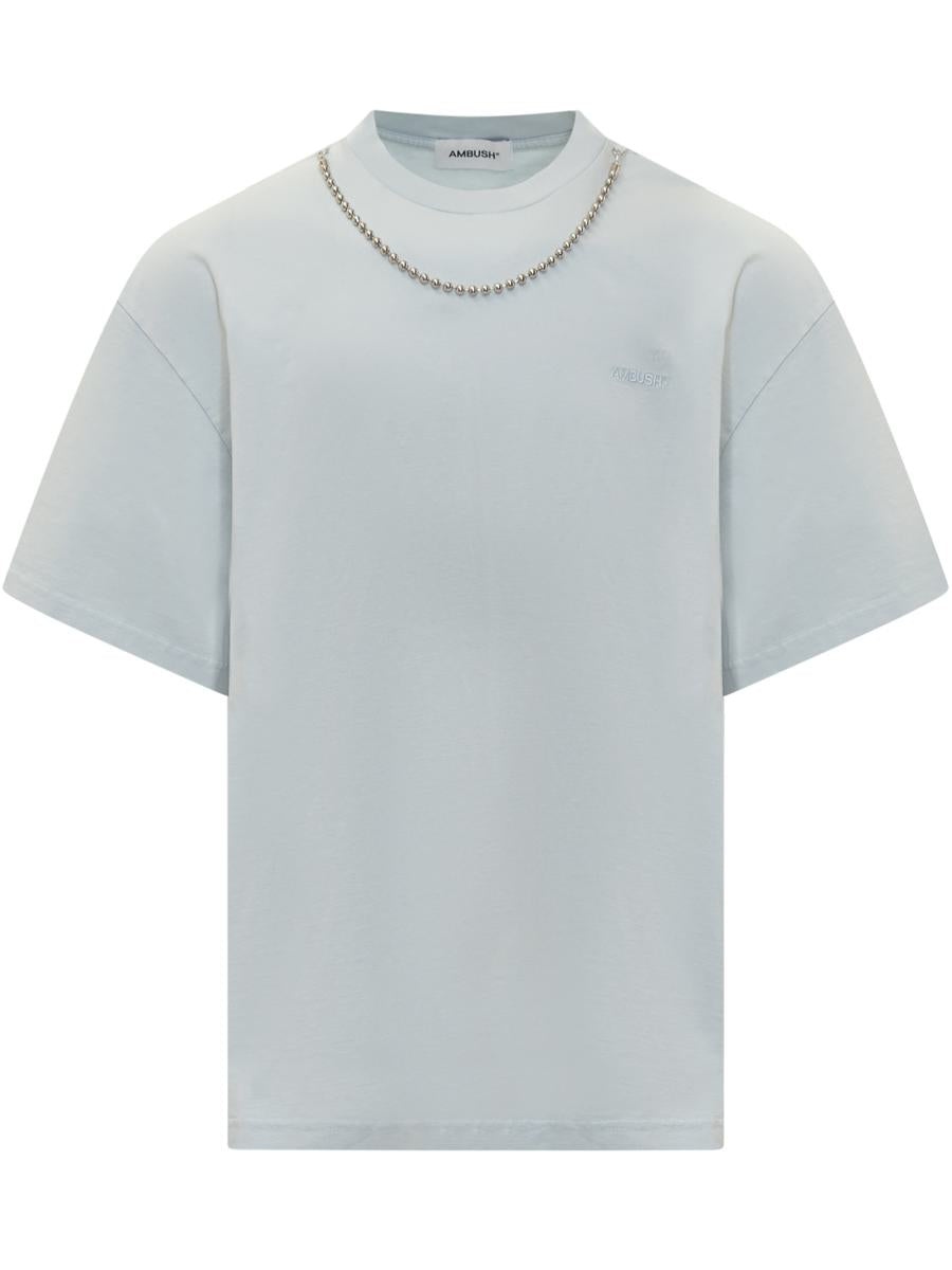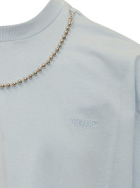 Boxy fit short-sleeved T-shirt. Crew neck. Ribbed hems. Metal bead necklace attached to neck. Removable necklace. Embroidered logo on front. Gender: Men Material: 100% COTTON Color: BLUE Made in: PT Product ID: BMAA001S24JER001 4141 *Import tax/duty will be calculated at checkout (If applicable)