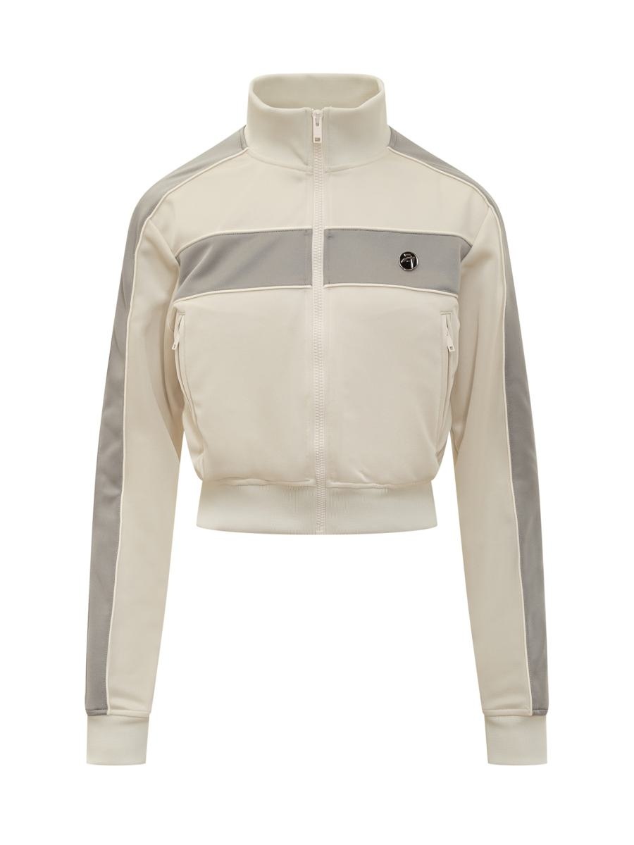Short jacket. Long sleeves. High collar. Zipper closure. Uncle pockets Contrasting bands on chest and sleeves. AMBLEM logo on front. Neck, hem and cuffs in elastic ribbed mglia. Gender: Women Material: 100% POLYESTER Color: Beige Made in: IT Product ID: BWBD001S24JER001 3109 *Import tax/duty will be calculated at checkout (If applicable)