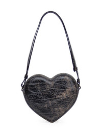 Black heart-shaped leather shoulder bag with ruined effect. Adjustable shoulder strap. Zipper closure. Metal logo on front. Width:19 Height:15 Depth:6 Gender: Women Material: OUTSIDE:100% LEATHER LINING:95% COTTON, 5% ACRYLIC Color: Black Made in: IT Product ID: BWNN006S24LEA001 1000 *Import tax/duty will be calculated at checkout (If applicable)