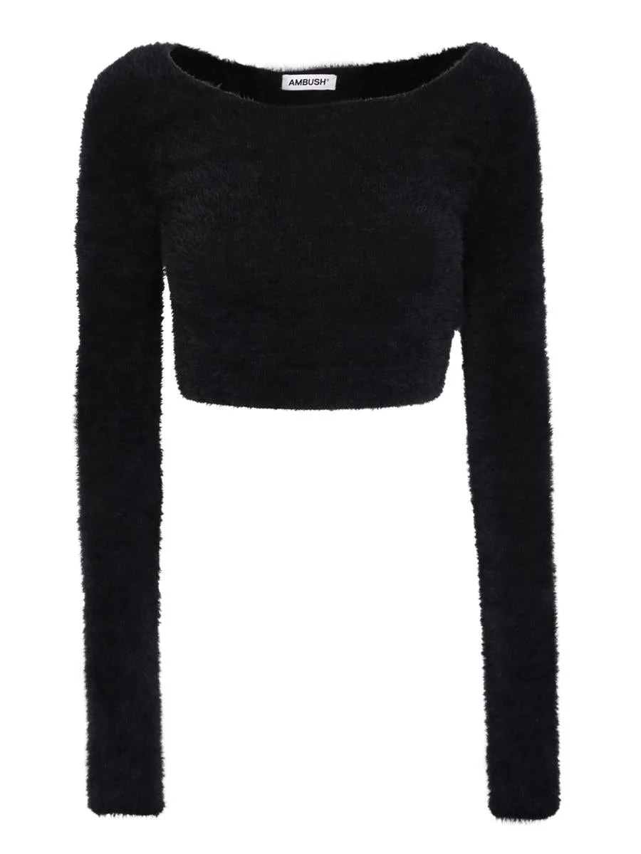 Ambush cropped design sweater Round neck. Long sleeves. Cropped. Straight hem. Color: black Material: 100% Polyamide Made in Italy Product code: 179890 Brand code: BWHE022F22 KNI001 1000 Gender: Women Material: 100% POLYAMIDE Color: BLACK Made in: IT Product ID: BWHE022F22 KNI001 1000 *Import tax/duty will be calculated at checkout (If applicable)