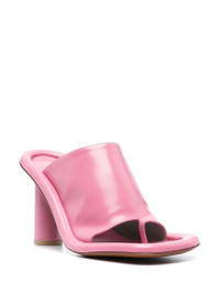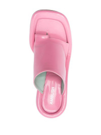Cushion square-toe leather mules from AMBUSH featuring calf leather, open toe, square toe, single toe strap, branded leather insole, slip-on style, pink no color and 105mm tubular heel. Heel 4,1 in / 10,5 cm Gender: Women Material: SOLE: CALF LEATHER 100%, LINING: CALF LEATHER 100%, OUTER: CALF LEATHER 100% Color: PINK Made in: IT Product ID: BWIJ001S23LEA0013000 *Import tax/duty will be calculated at checkout (If applicable)