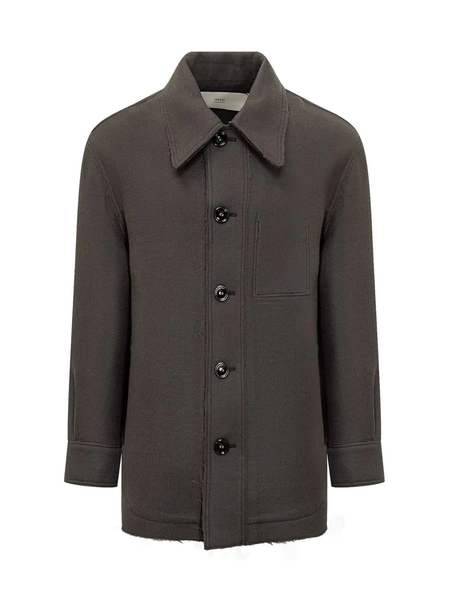 Dark gray wool Ami Alexandre Mattiussi overshirt with front buttons, breast pocket and raw-cut finished edges. Gender: Men Material: 100% VIRGIN WOOL Color: GREY Made in: Romania Product ID: H25UJK824WV0078 020H25 *Import tax/duty will be calculated at checkout (If applicable)