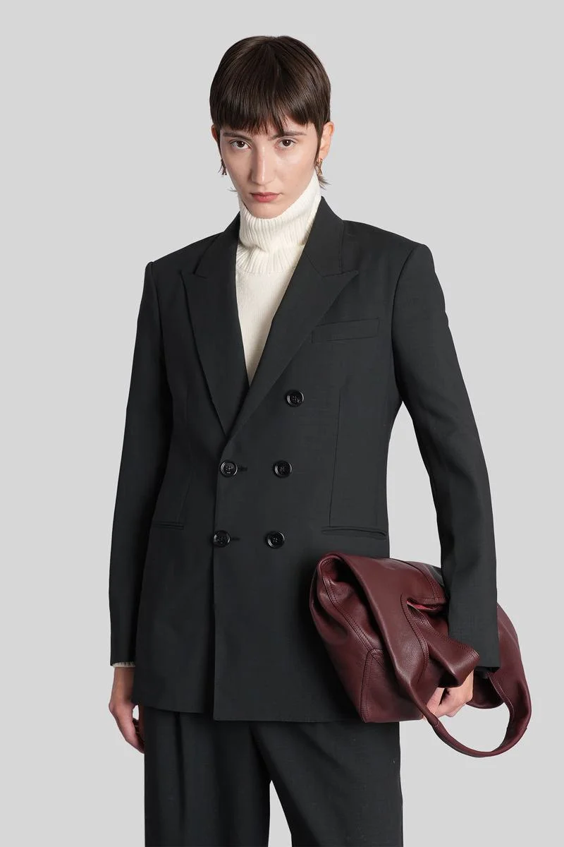 BLACK WOOL DOUBLE BREASTED JACKET