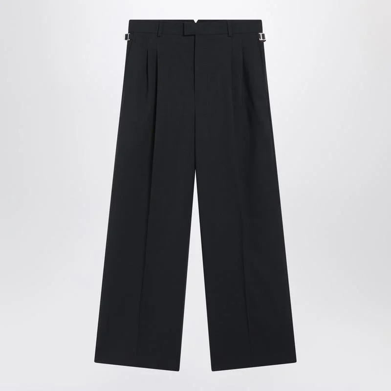 Ami Paris trousers in virgin wool in anthracite grey, characterized by a front closure, belt loops, two side welt pockets, two welt pockets with button at the back, wide leg, pleats at the front, and detail with side straps. Gender: Men Material: Fabric I: 100% Virgin wool / Lining: 100% Polyester / Pocket lining: 65% Polyester - 35% Cotton Color: GREY Made in: Romania Product ID: HTR812WV0066/R_AMI-020 *Import tax/duty will be calculated at checkout (If applicable)