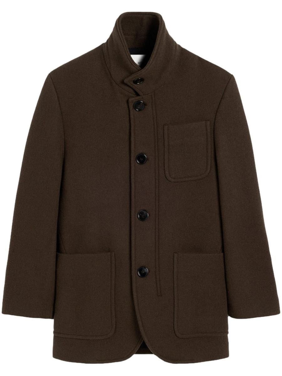 coffee brown wool high neck front button fastening long sleeves three front patch pockets straight hem Gender: MEN Material: VIRGIN WOOL 100% Color: BROWN Made in: TN Product ID: HCO218 WV0049 221 *Import tax/duty will be calculated at checkout (If applicable)