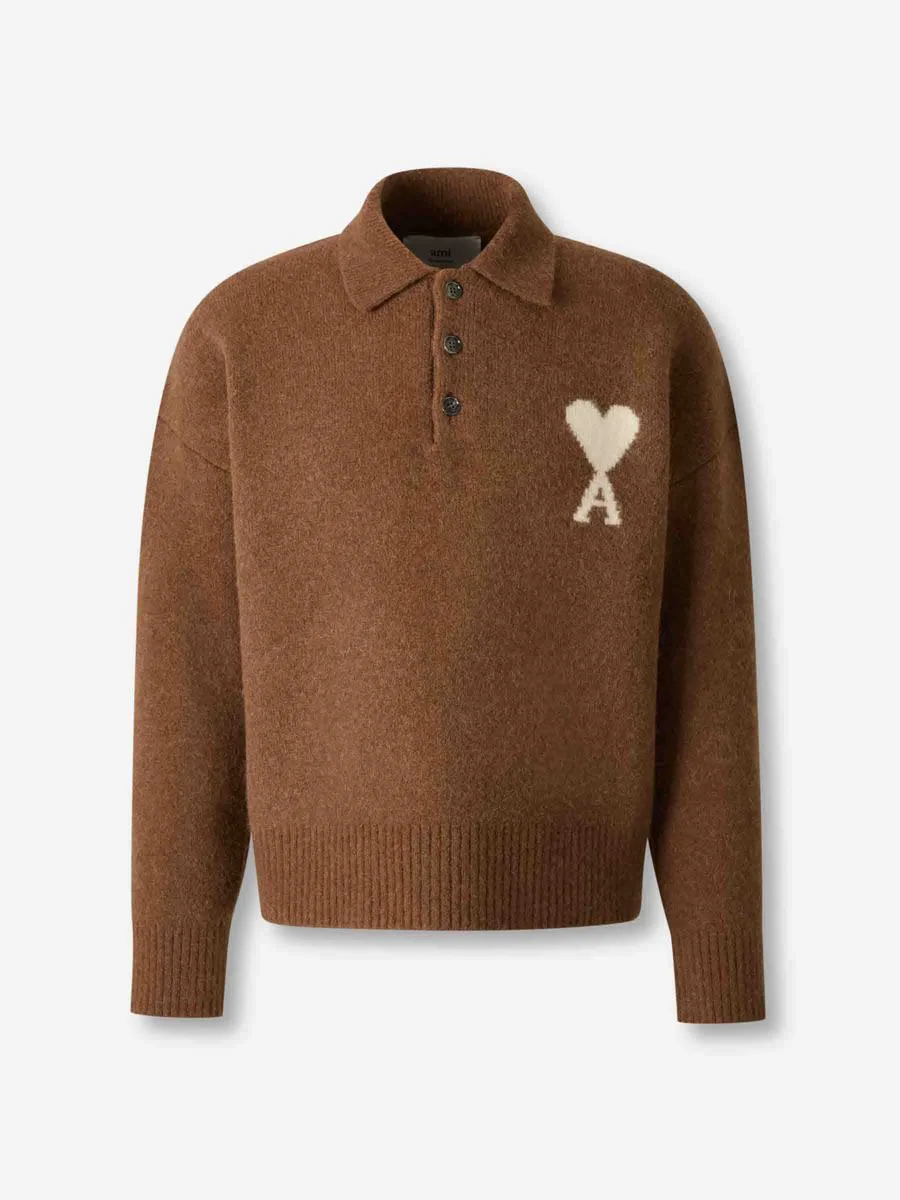 Polo Neck SweaterSweater By Ami Paris• Ribbed finishes on cuffs and hem• Jacquard logo on the chest• Regular fit• Made from merino wool knit of• Polo neck sweater• Button closureComposition: 100% merino woolPortugal Gender: Men Material: 100% MERINO WOOL Color: BROWN Made in: Portugal Product ID: UPL408.KN0135_217HAZELNUT-OFF WHIT *Import tax/duty will be calculated at checkout (If applicable)