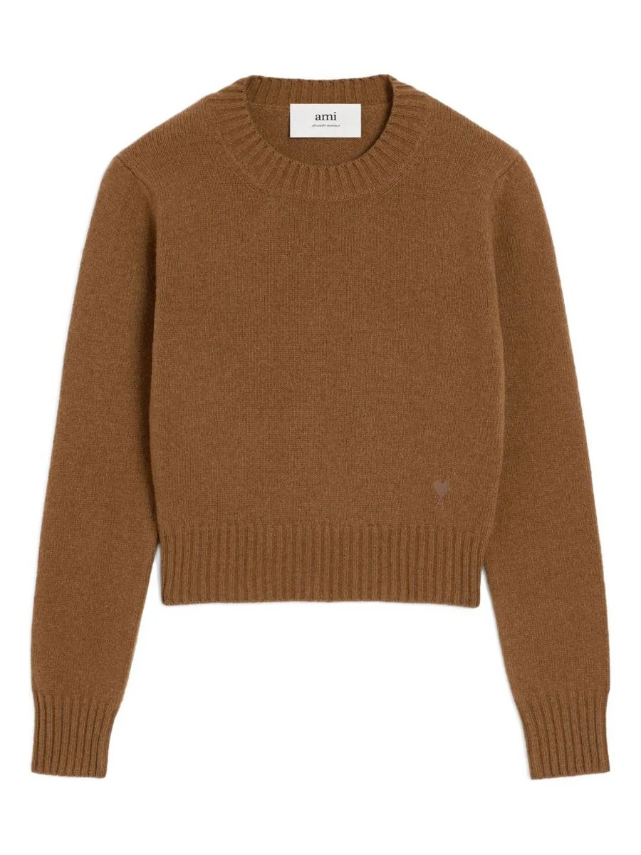 brown crew neck Ami De Coeur embroidery ribbed hem Gender: Women Material: 97% CASHMERE 3% WOOL Color: BROWN Made in: Italy Product ID: H25FKS832005216H25 *Import tax/duty will be calculated at checkout (If applicable)