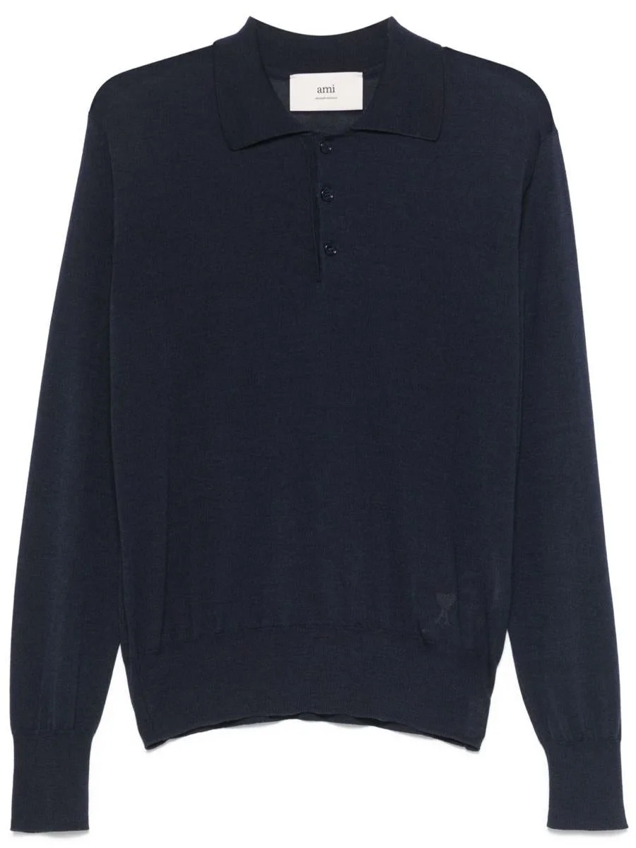 NAVY WOOL TONAL AMI DE COEUR POLO