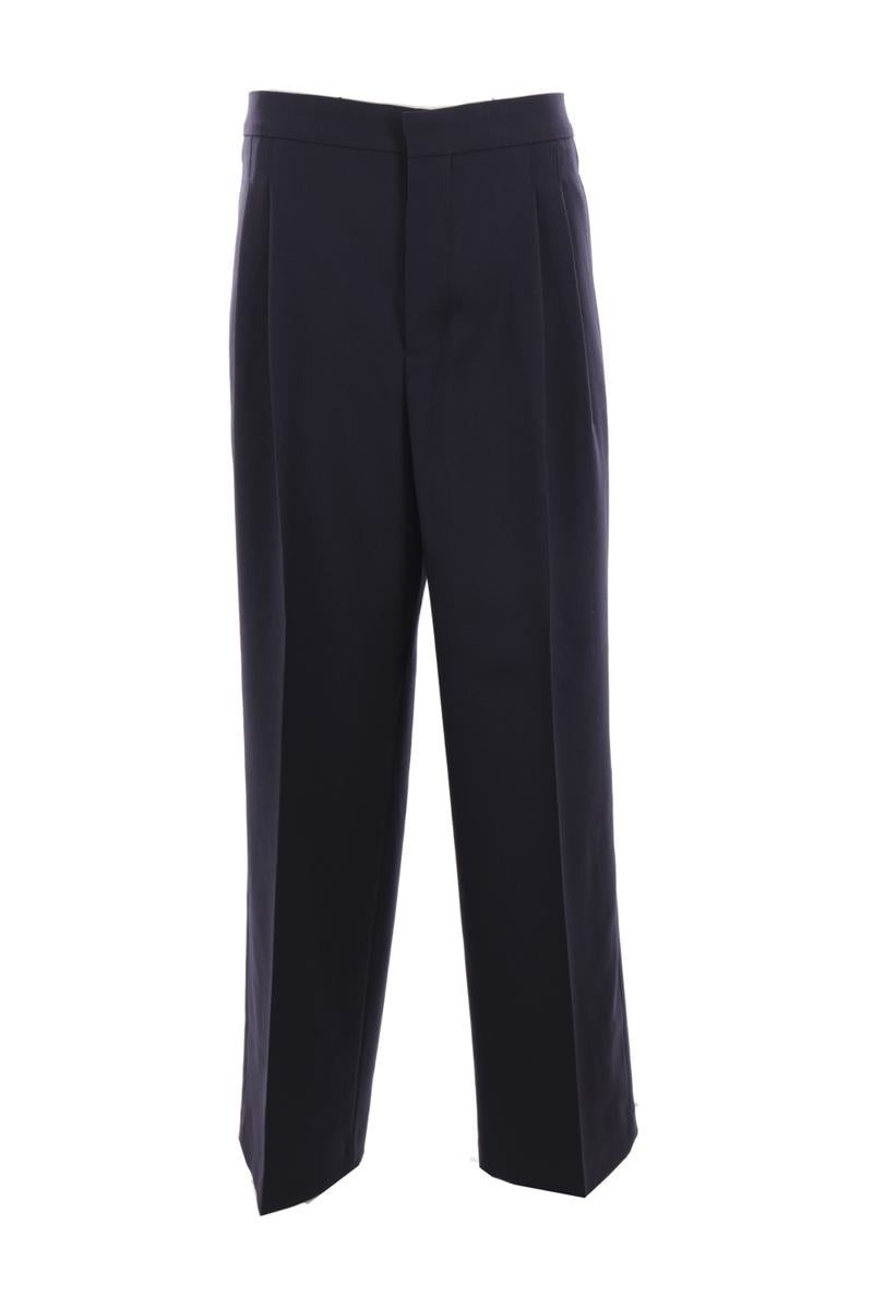Ami Paris's wide-leg trousers crafted in blue wool gabardine. Featuring button closure, side adjustable tabs at waist, multiple pockets, front pleats, central pressed crease and partial lined interior. Gender: MEN Material: MAT PRINCIPALE:100% LAINE VIERGE Color: BLUE Made in: RO Product ID: HTR429WV00264011 *Import tax/duty will be calculated at checkout (If applicable)