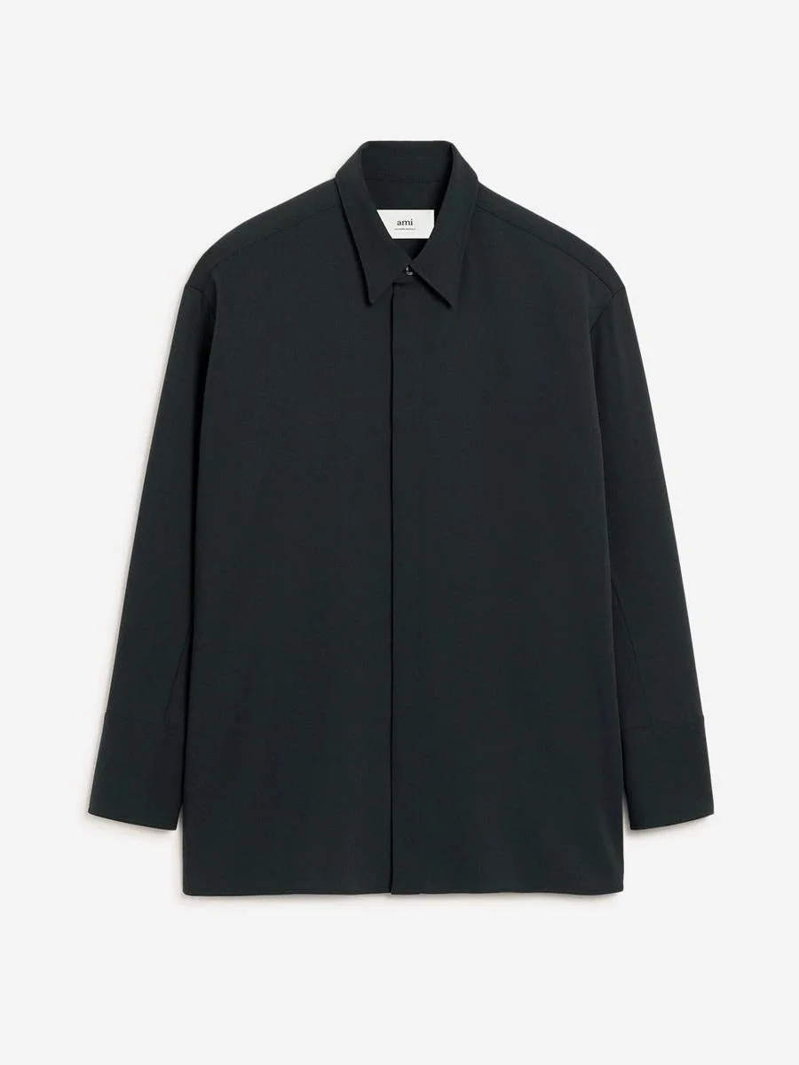Wool Dress ShirtShirt By Ami Paris• Cuffs with buttons• Oversized• Silver metallic placket of Ami de Coeur in the middle of the back• Concealed button placket• Classic collar• Side slits at the bottomComposition: 100% woolPortugal Gender: Men Material: 100% WOOL Color: Black Made in: Portugal Product ID: HSH782.WV0067_020ANTHRACITE *Import tax/duty will be calculated at checkout (If applicable)