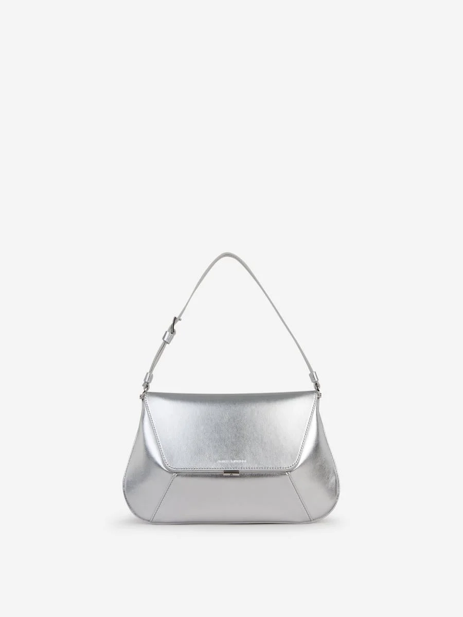 Bag by Amina Muaddi; Crossbody and handbag; Smooth nappa leather; An adjustable top handle; Logo embossed on the front; Magnetic frame closure; Interior compartment; One interior pocket; Lined interior; Silver metal hardware; Interior with mirror Made in Italia 26,5 x 7 x 16,5 cm100% Lambskin. Lining: 100% Lambskin. Hardware: 100% Brass Gender: Women Material: 100% LAMBSKIN. LINING: 100% LAMBSKIN. HARDWARE: 100% BRASS Color: SILVER Made in: IT Product ID: AMI_Silver *Import tax/duty will be calculated at checkout (If applicable)