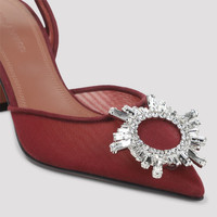 Amina Muaddi Begum 70 Red Mesh Pumps. Crafted from dark red mesh and suede leather, pointed toe, signature metal plaque embellished with crystals on the front, tonal strap on the back, covered spool heel, leather insole and outsole. Measures: Heel high: 7cm Gender: Women Material: 100%MESH 100%SUEDE LEATHER Color: RED Made in: Italy Product ID: 15S365637BEG_ *Import tax/duty will be calculated at checkout (If applicable)