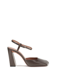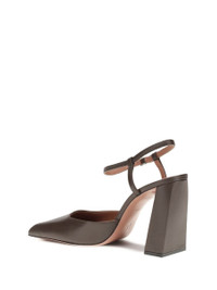 AMINA MUADDI'S PATENT LEATHER CHARLOTTE PUMPS ARE AN EXPRESSION OF BOLD, MODERN ELEGANCE. THE ADJUSTABLE BUCKLE STRAP AROUND THE ANKLE ENSURES A SECURE AND CUSTOMIZED FIT, WHILE THE PATENT LEATHER DESIGN ADDS SHINE AND SOPHISTICATION. THE GEOMETRIC TOE ON THE FRONT LENDS A CONTEMPORARY, STRUCTURED FEEL, WHILE THE SCULPTURAL HEEL OFFERS HEIGHT AND A SLEEK PROFILE WITH A UNIQUE, ATTENTION-GRABBING DESIGN. THE LOGO-EMBOSSED INSOLE COMPLETES THE DESIGN, ADDING A DISTINCTIVE DETAIL. SHOES IT Gender: Women Material: CALF LEATHER BOS TAURUS Color: GREY Made in: Italy Product ID: 15S365667CHA_COFFEESILV *Import tax/duty will be calculated at checkout (If applicable)