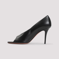 Amina Muaddi Black Nappa Leather Julianne 90 Peep Toe Pumps. Pure black nappa leather pumps, round and open toe, tonal upper, slip-on style, tonal heel. Measures: Heel high: 9cm Gender: Women Material: 100%NAPPA LEATHER Color: Black Made in: IT Product ID: 13S362498JUL_ *Import tax/duty will be calculated at checkout (If applicable)