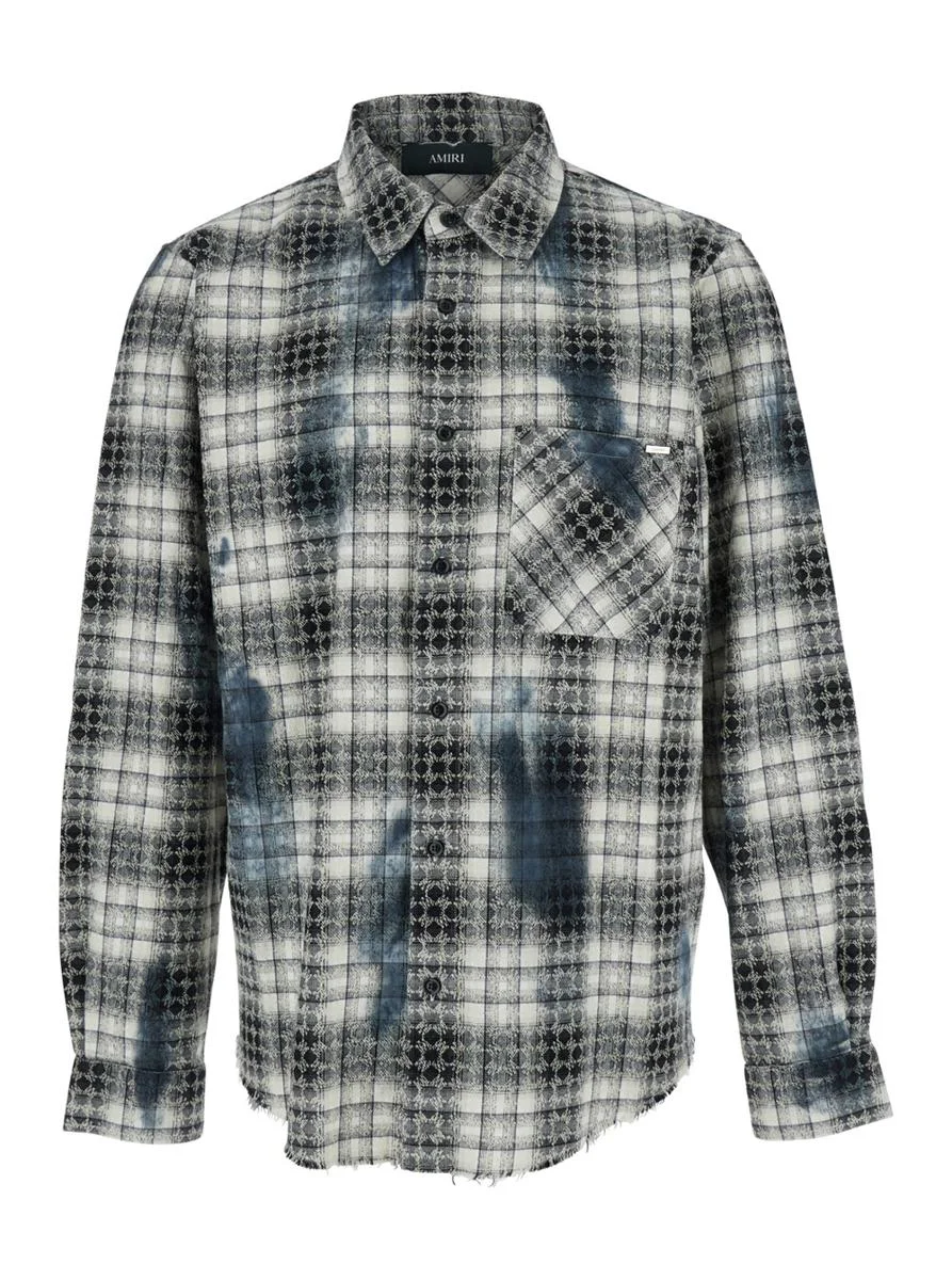 Amiri Grey Shirt With Check Pattern And Logo Lettering On The Back In Flannel Man