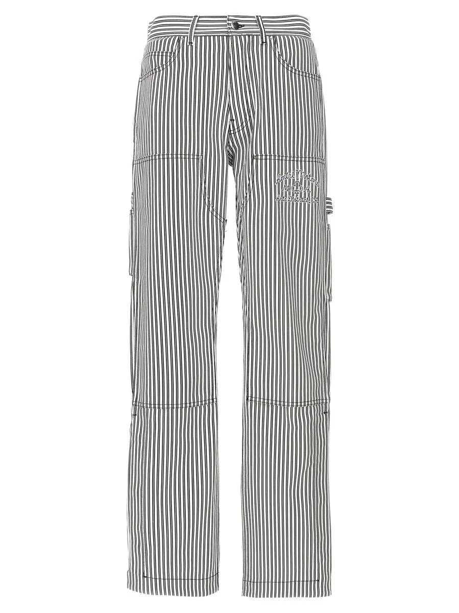 'Motors Carpenter' striped cotton pants with button closure, pockets, logo embroidery Gender: Men Material: 100% COTTON Color: WHITE/BLACK Made in: Imported Product ID: PS24MAW029BLACKWHITE *Import tax/duty will be calculated at checkout (If applicable)