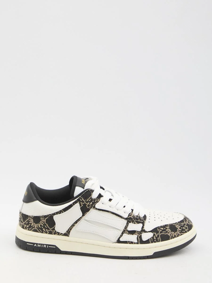 Skel-Top Low sneakers in white and black leather with applied bone details. Featuring canvas inserts with Amiri logo all over, perforated toe, lace-up closure, Amiri logo on the tongue, heel, and sole, and a rubber sole. Dust bag included. Additional laces included. Any leather imperfections are not to be considered manufacturing defects, but a peculiarity of the material. ITA size Size nationality: IT Gender: Men Material: 100% COW LEATHER; 100% TETORON; RUBBER SOLE Color: Black Made in: VN Product ID: 9940867 AMFOSR1111 BLACK *Import tax/duty will be calculated at checkout (If applicable)